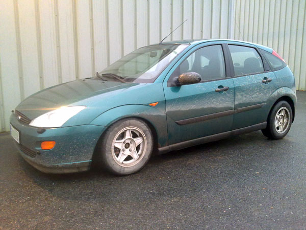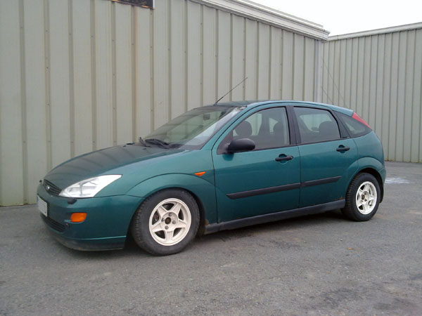 20.01.2010. Focus on joutanut seistä koska korvaava kulkine talven ajaksi on löytynyt, ja tallissa on ollut kaverin auto tekeillä hetken aikaa joten ei ole ollut tarvetta eikä aikaakaan tehdä tälle mitään. Nyt kuitenkin vaihdoin autoon takuuna tulleet jäykemmät etujouset. Jäykkyyseroa on irtojousena kokeiltuna reippaasti, pituuseroa ei yhtään. Laitoin samalla uudet iskarin ylälaakerit ja viime kerralla vaihtamatta jääneen toisenkin koiranluun. Etupää nousi 2-3cm aiempaa ylemmäs, ollen edelleenkin matala mutta nyt pystyy autolla ajamaan normaalisti eikä pyörän kulmat ole aivan pilallisia.. Lisäksi lain vaatima 8cm maavara löytyy juuri ja juuri vakiokokoisilla 14" renkaillakin. Ja nyt sopii tunkki alle.. Ajettavuus normalisoitui myös vaikka takapäässä on edelleenkin vakiojouset.